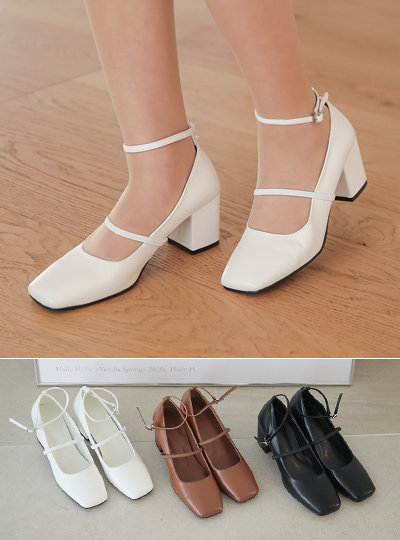 Square Toe Mary-Jane Block Heels Pumps Heels