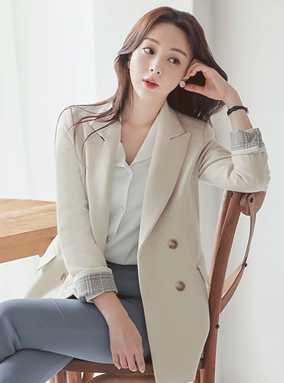 Check Sleeves Roll-up Color Combination Double-button Jacket