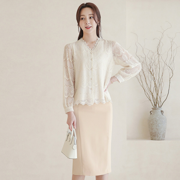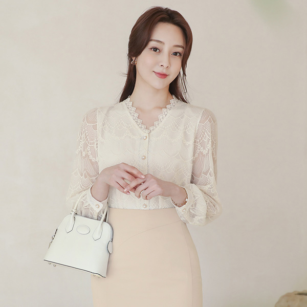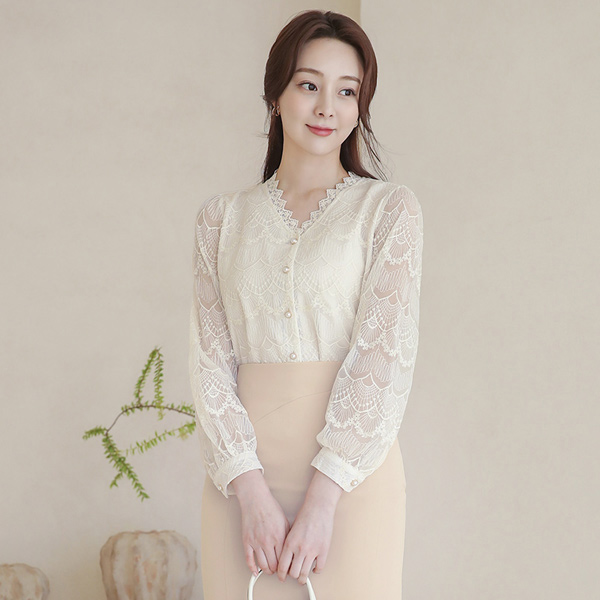 Macrame Embroidery Lace Pearl Buttons Blouse