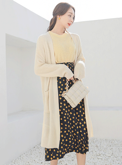 Side Slit Knit Open Long Cardigan