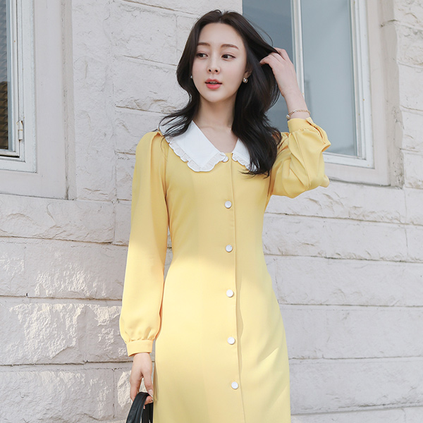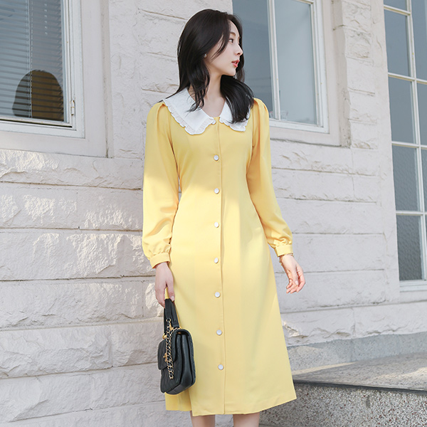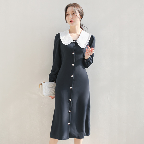 Frill Big Collar Back Ribbon A-line Dress