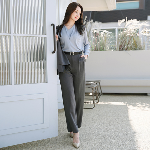 Inverted Pintuck Shirring V-neck Blouse