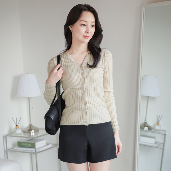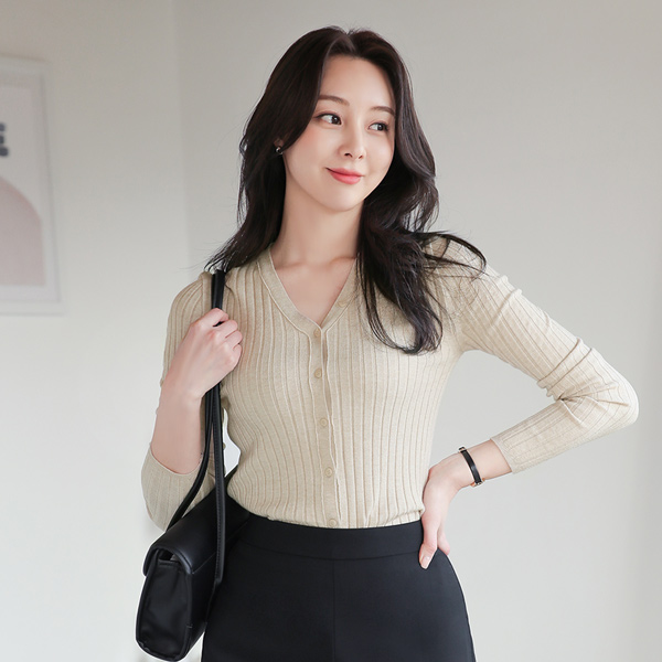 Soft Corduroy Button Trimming V-neck Knit