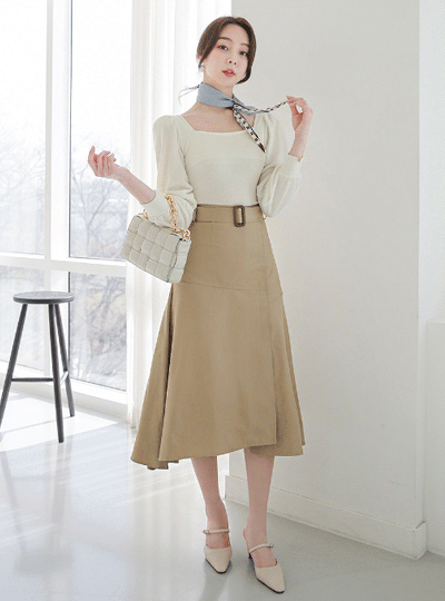 Square Neck Shoulder Pads Slav Knit T-shirt