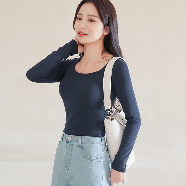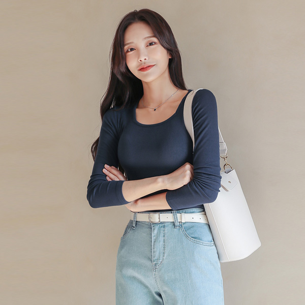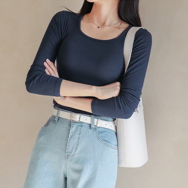Soft Tencel Corduroy Slim Square Neck T-shirt