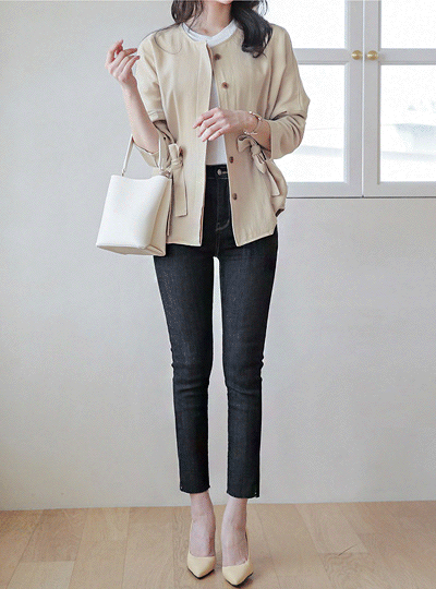 Linen Cotton String Belted Round Jacket