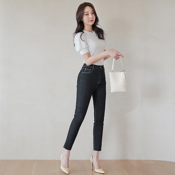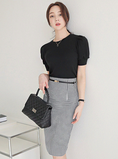 Shirring Puff Slim Round T-shirt