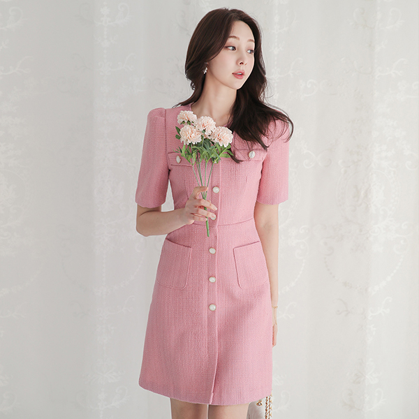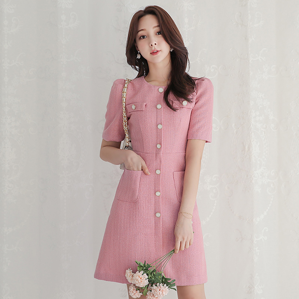 Double Pockets A-line Tweed Dress