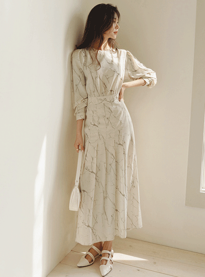 Eli Printing Pleats Long Dress