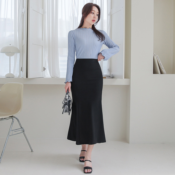 Wrinkle Pleats Piping Color Combination Bell Sleeves Blouse