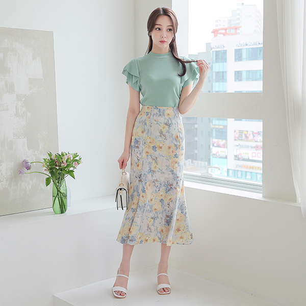 Tiered Ruffle Sleeves Cooling Knit