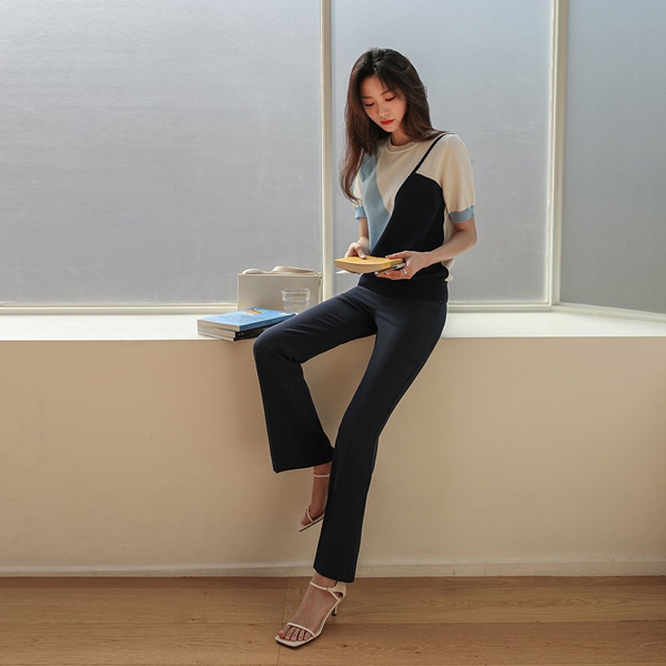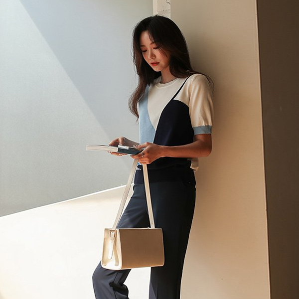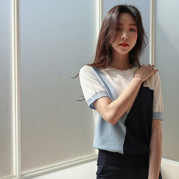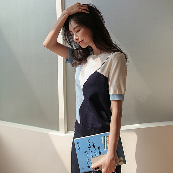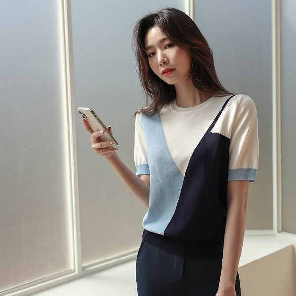 Oblique Vivid Color Mix Short Sleeves Knit T-shirt