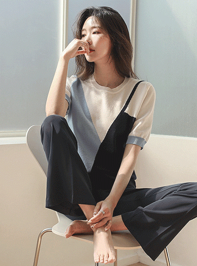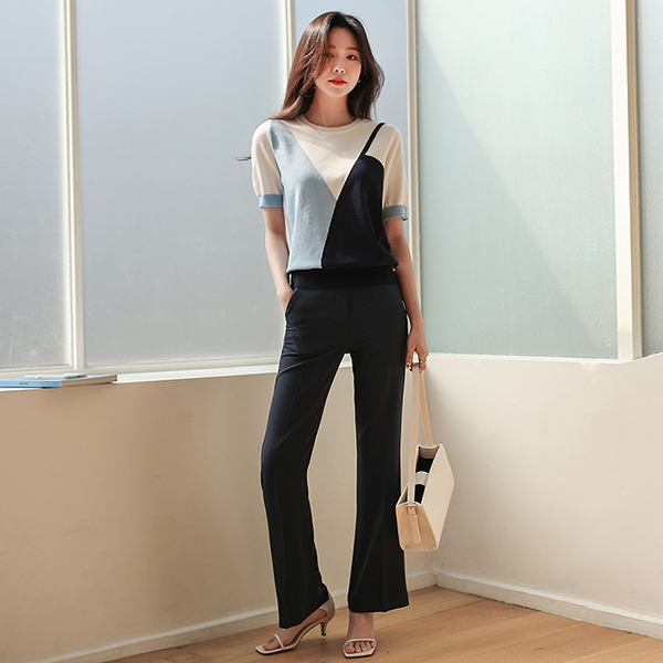 Oblique Vivid Color Mix Short Sleeves Knit T-shirt