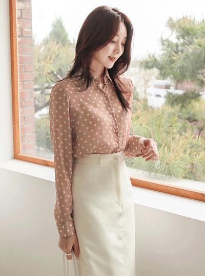 Collar Shirt Dot Chiffon Blouse