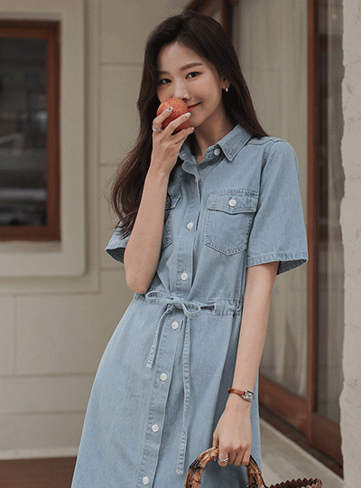 Double Pockets String light 썬 Denim Dress