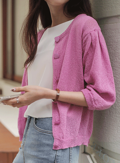Popping Color Puff See-through Knit Cardigan