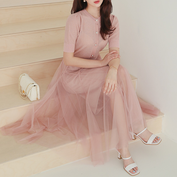 Romantic Mesh layered Banding Plain Gauze Skirt