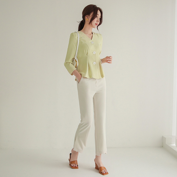 No-collar Transparent Shell Big Button Jacket&Blouse