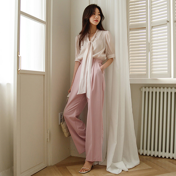 Satin Glossy Midi Puff Tie Blouse