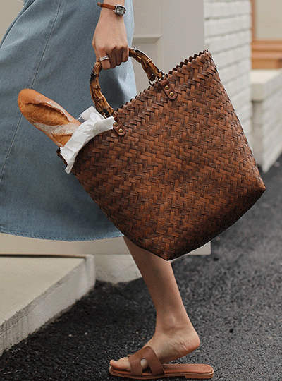 Natural Bamboo Handle Rattan bag
