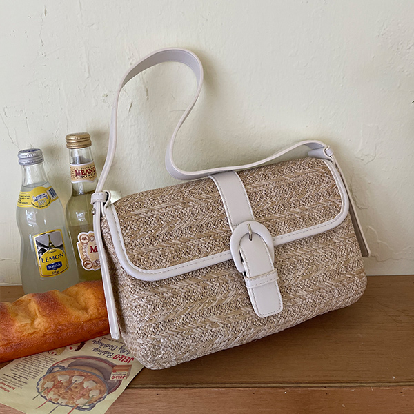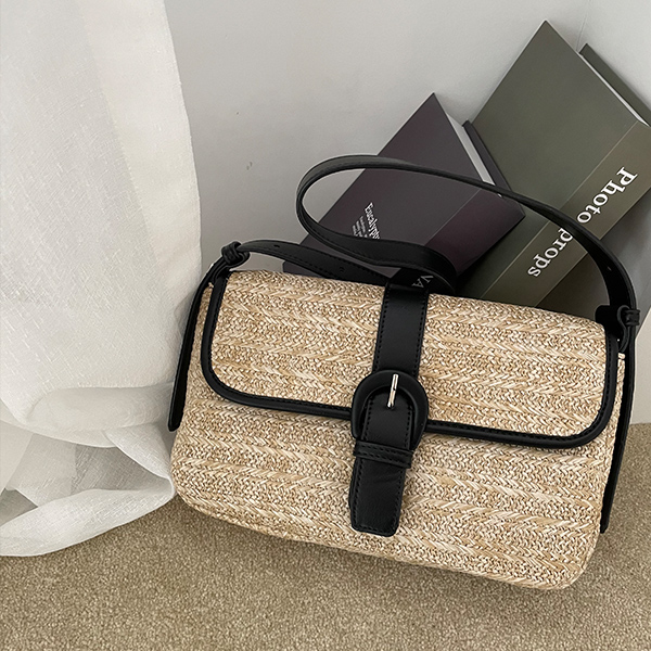 Rattan Leather Belted Square Shoulder Bag