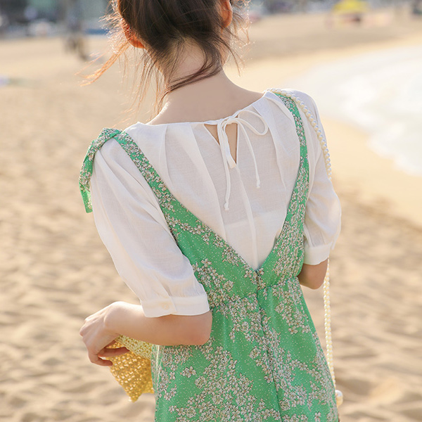 Shoulder Ribbon Bustier Chiffon Maxi Dress