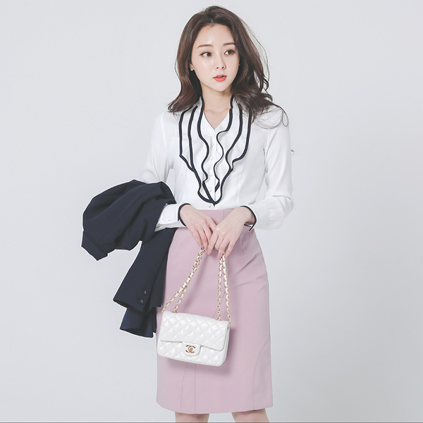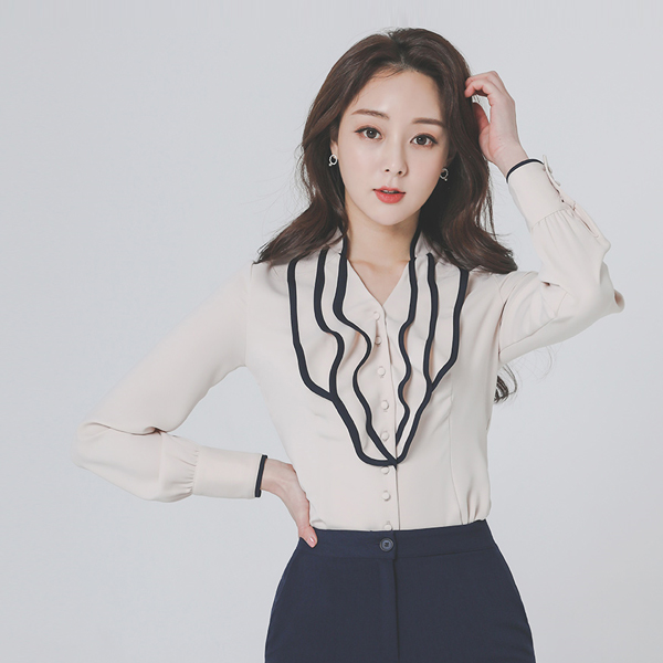 [Scratch]Romantic Ruffle V-neck Piping Blouse