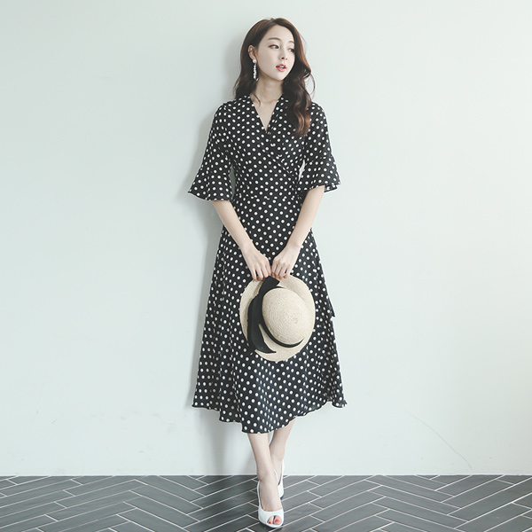 [Scratch]Classic Dot Chiffon Long Dress