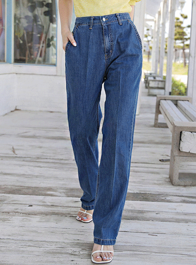 Point Wrinkle Soft Wide Long Denim Pants