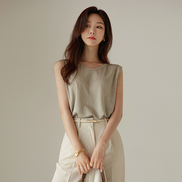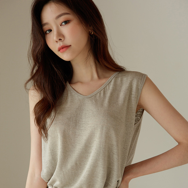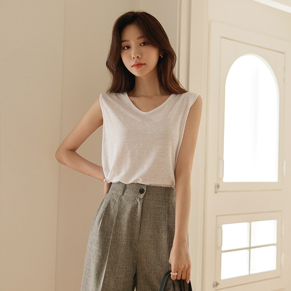 Linen V-neck Sleeveless T-shirt