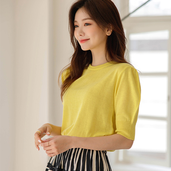 Lovely Vivid Color Short-sleeve Knit T-shirt