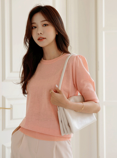 Lovely Vivid Color Short-sleeve Knit T-shirt