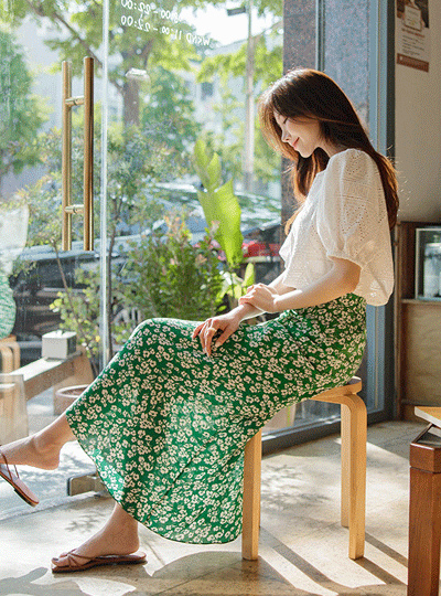clear Flower Back Banding Long Skirt