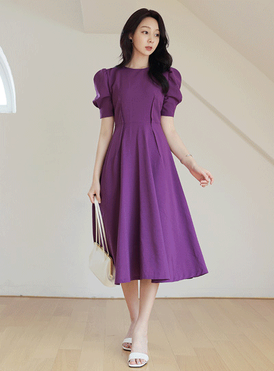 Laura Puff Pintuck Flared Dress