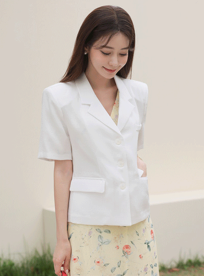 Linen Touch White Button Jacket