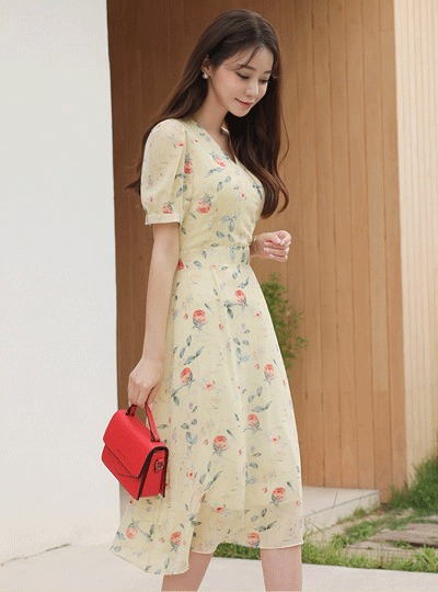Romantic Rose Chiffon Flared Dress