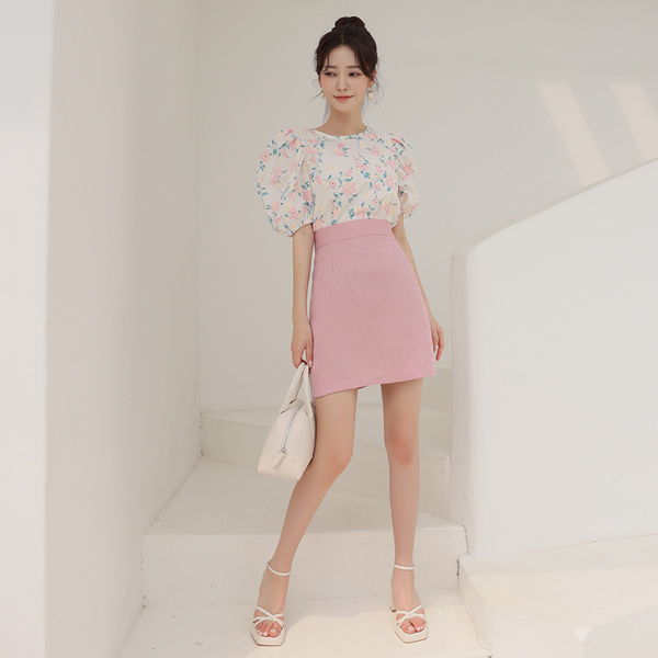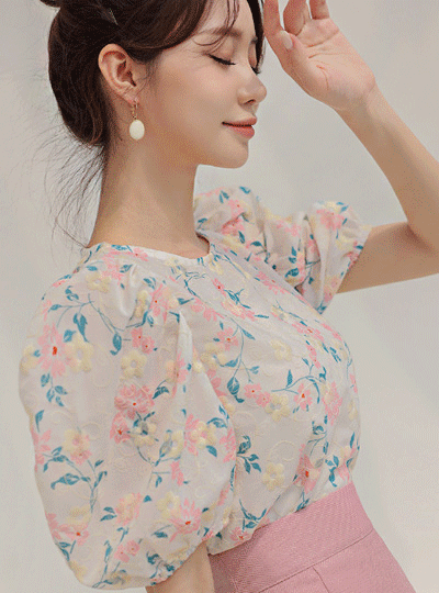Candy Flower Embroidery Puff Blouse