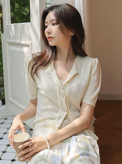 Lovely Pearl Buttons Puff Knit Cardigan