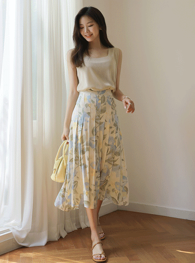 Soft Romantic Flower Patterns Pleats Skirt