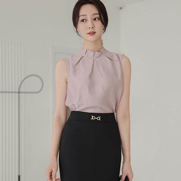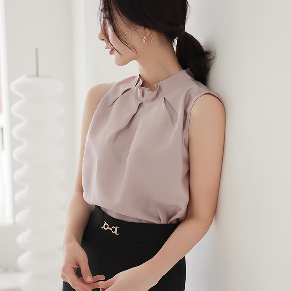 Skily Pintuck Frill Neck Sleeveless Blouse