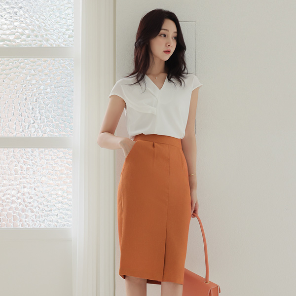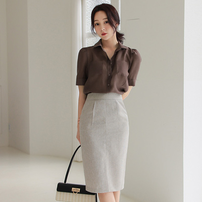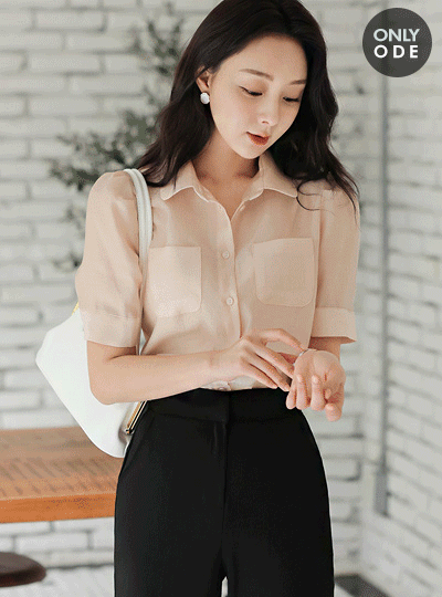 Unbalance Pinch-Shirring V-neck French Sleeves Blouse