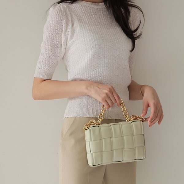 Bold Chain Strap Cowhide Padding Shoulder Bag