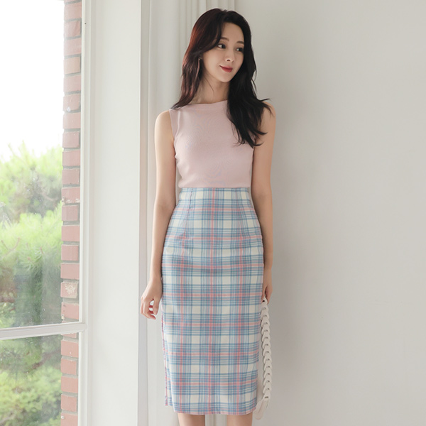 Boat Neck Pastel Sleeveless Knit T-shirt