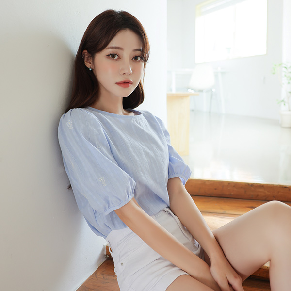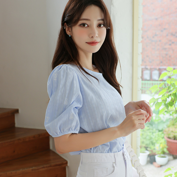 Mini flower embroidery Cotton Punching Blouse