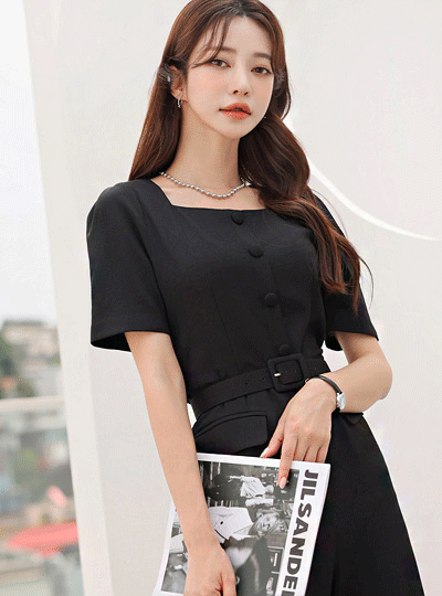 Classy Square Neck Button Belted Jumpsuit