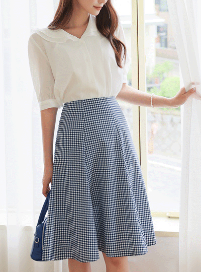 Cotton Shepherd Check Gored Flared Skirt