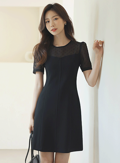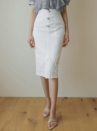 Silver Ring Pearl Buttons Trimming H-line Skirt
