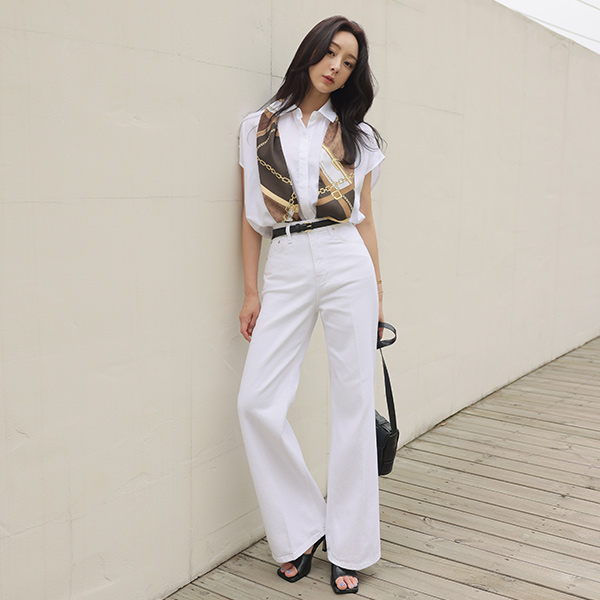 Tencel Hidden Button Cap-Sleeves loose fit Shirt