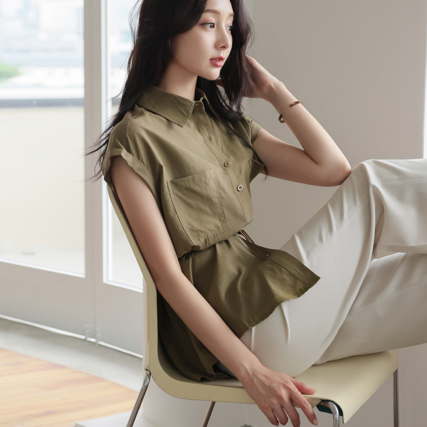 French Sleeves Stitch Pocket Skily Shirt