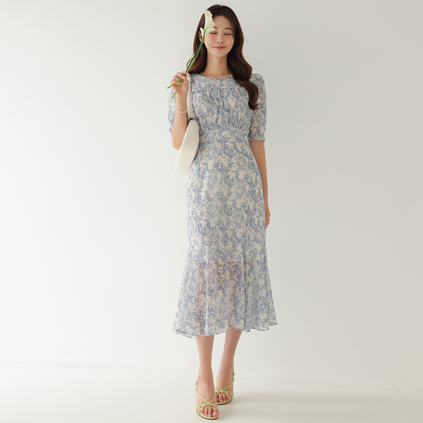 Ethnic Volume shirring Chiffon Dress